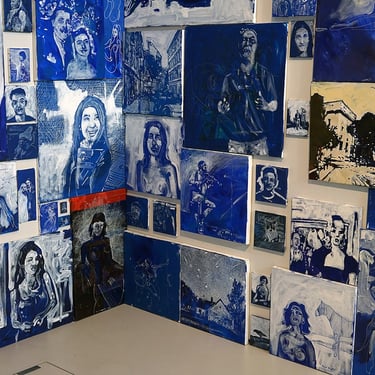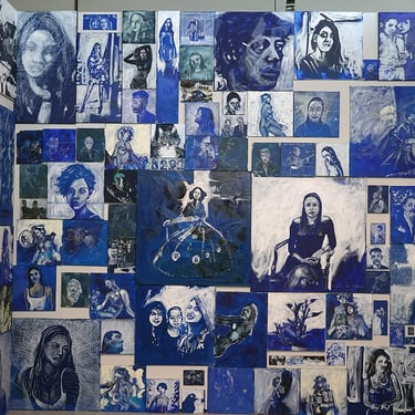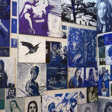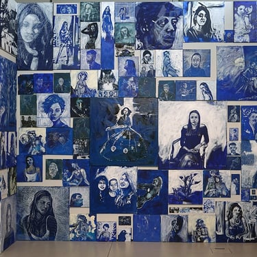The Blue Room was painted with white strokes on a blue expanse,