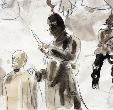 Bleistift, tusche auf Kupferdruckpapier